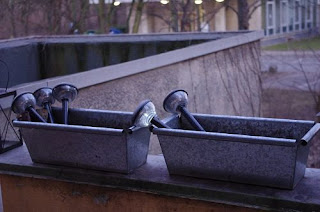 Heute hat es sich dann unser schlappes Hühnchen den ganzen Vormittag über auf dem Sofa bequem gemacht und hat mit Papa Tischkicker gespielt... ich hab die Zeit genutzt und habe unsere Terrasse... Porch... Patio... (was auch immer... ;) ) vom Winterspeck befreit... Speck deshalb weil meine Nachbarin über uns immer super fleissig den Winter über die Vögel mit Fettfutter mästet... Das heisst alle Töpfe, Boden, Vordach etc. sehen in etwas so aus...